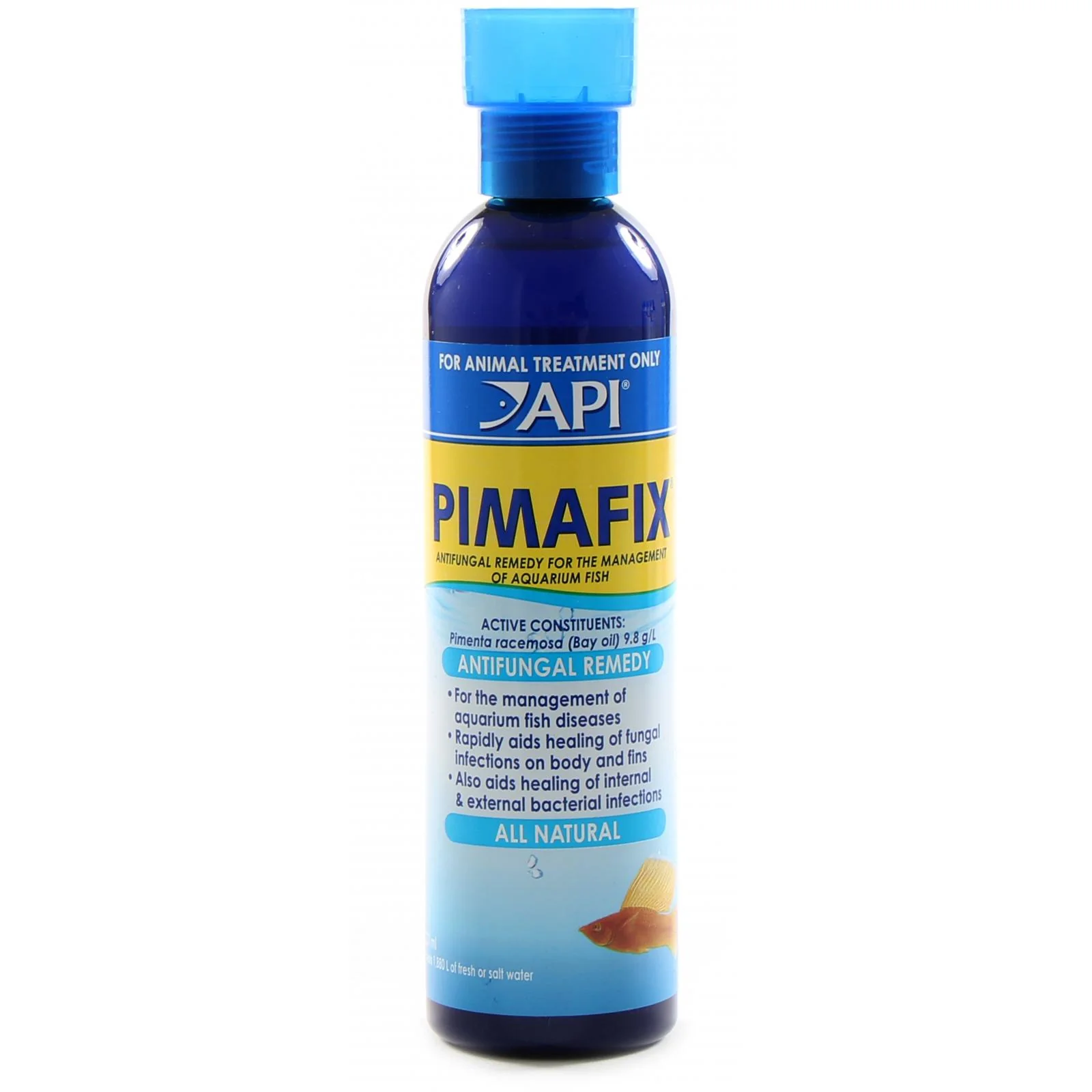 API® PIMAFIX fish remedy is an all-natural, antifungal remedy for fish fungal infections, with a formula derived from the West Indian Bay Tree – a proven natural antifungal. API PIMAFIX fish remedy rapidly treats cottony growth, mouth, body fungus, and the reddening of the fins and body, in addition to both internal and external bacterial infections.